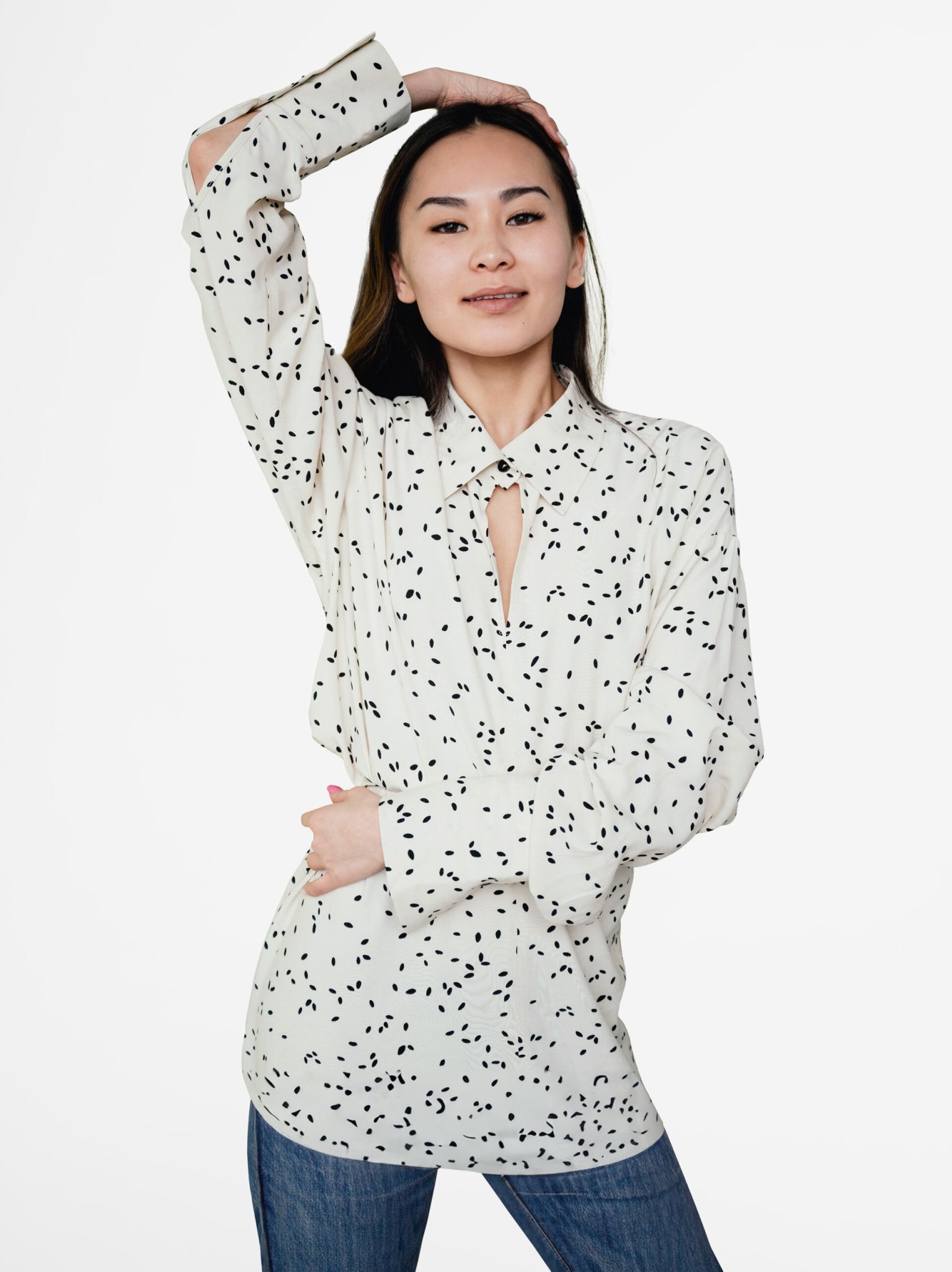 Dotted Long-Sleeve Blouse